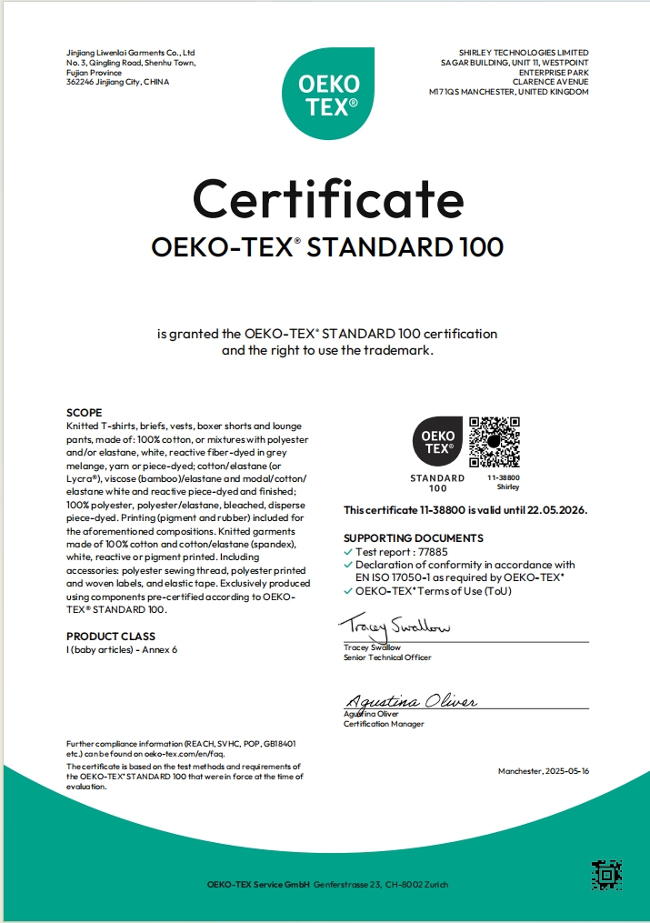 Notre réseau de vente couvre l'Europe, les États-Unis, l'Océanie, le Moyen-Orient, l'Amérique du Sud et l'Afrique. Plus de 50 clients de ces régions passent des commandes répétées avec nous, y compris DIESEL, ELLE, Arrow, Jockey, Hush Puppies, Byford, Disney, Netto, Splash, FASHIONSPARK, La Polar, Riplay et plus encore. Nous sommes autorisés à fabriquer des articles portant Disney, Marvel et d'autres marques sous licence, et avons obtenu les certifications BSCI, Sedex, GOTS, Oeko-Tex.